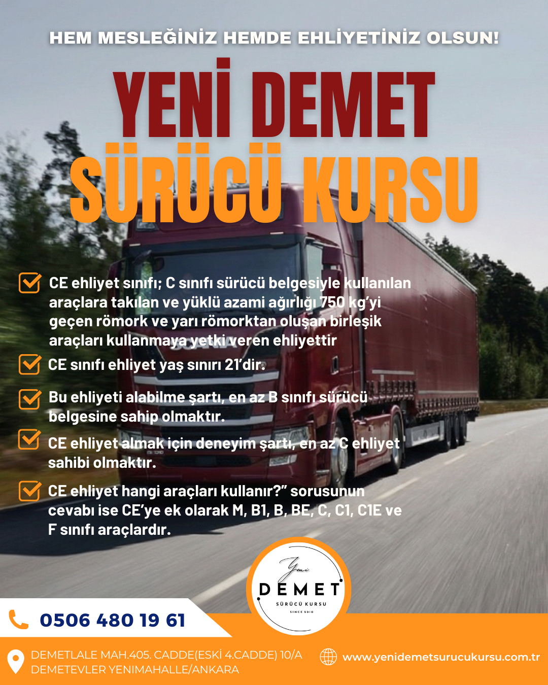 Araç Yetkisi :Halk arasında TIR olarak bilinen, römork veya yarı römork çeken kamyonları kullanma yetkisi verir.